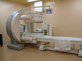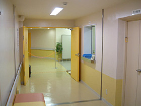 従来、病院の検査室では[アイレストグリーン]とよばれる緑色の床や壁が主体となっていた。これは、[色彩調節]とよばれる機能主義的な色彩計画のなごりで、赤い血液の補色である青緑色を基調とすることで、医師やスタッフの誤認を防ぐ配慮がなされている。 一方、患者にとっては、検査とはいえ閉ざされた空間で大きな機械に囲まれるのは、何とも心許ない気がする。そのため、本計画では暖色系の色彩を基調とし従来の検査室に見られた無機的な冷たさを軽減するよう努めている。