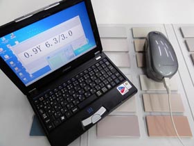 カラープランニングセンターでは、景観の調査や届出業務に大変便利な色彩計測システムを大日精化工業株式会社と共同で開発しました。分光光度計を用いた高度な色彩管理を従来のおよそ1/3の価格(代表的な分光光度計との比較)で実現するものです。